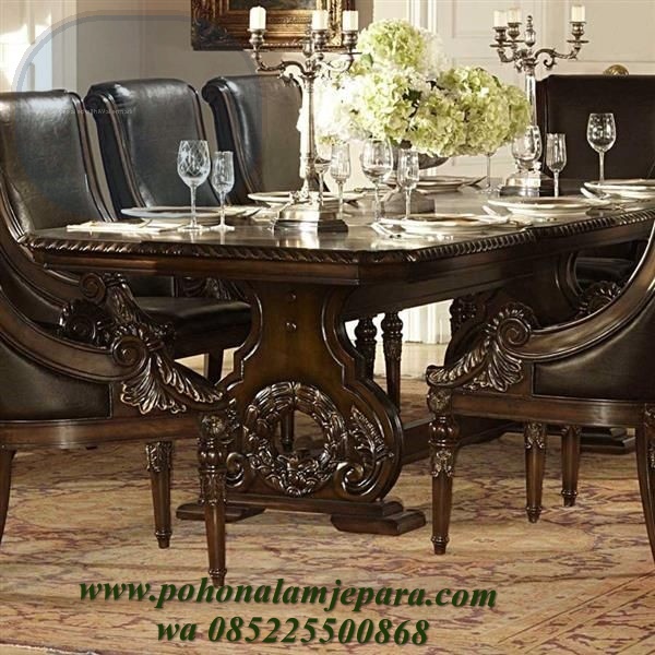 Meja makan mewah ukiran dengan sentuhan desain klasik ukiran menampilkan pesona syang menawan.